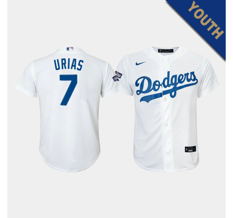 - Kid's Dodgers Julio Urias #7 White 2020 World Series Champions Home Replica Player Jersey
