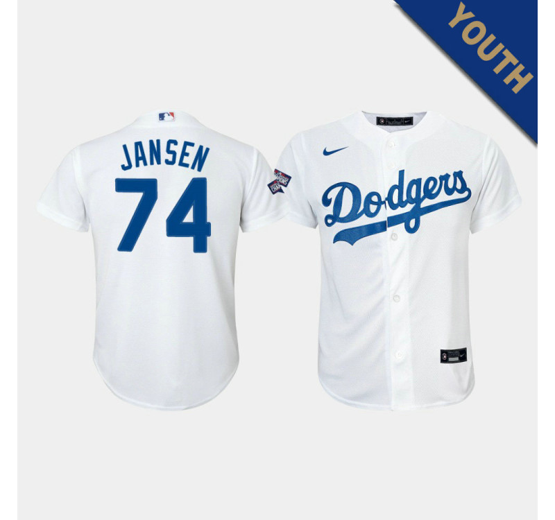 - Kid's Dodgers Kenley Jansen #74 White 2020 World Series Champions Home Replica Player Jersey