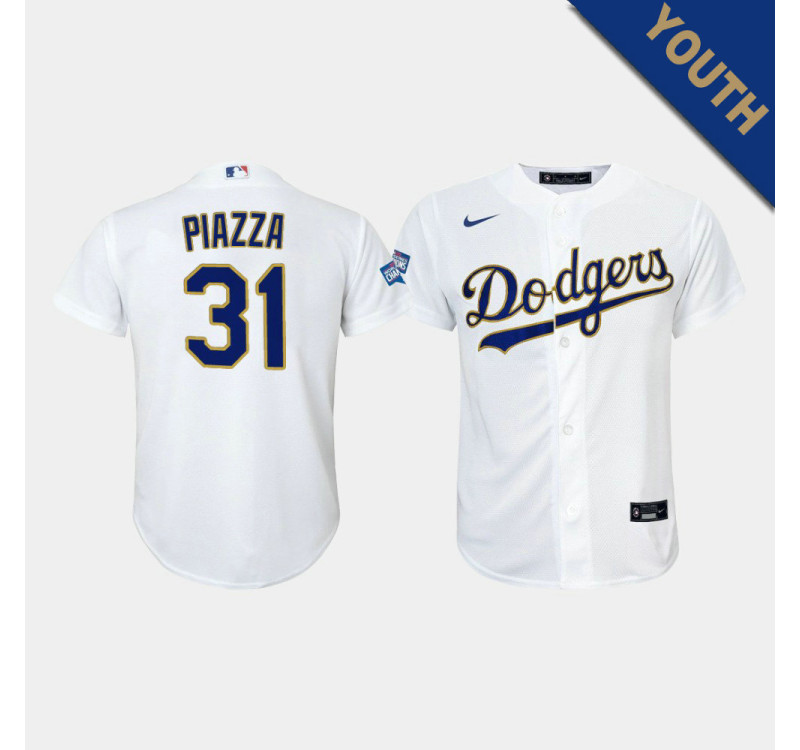 - Kid's Dodgers Mike Piazza #31 White 2021 Gold Program Replica Jersey