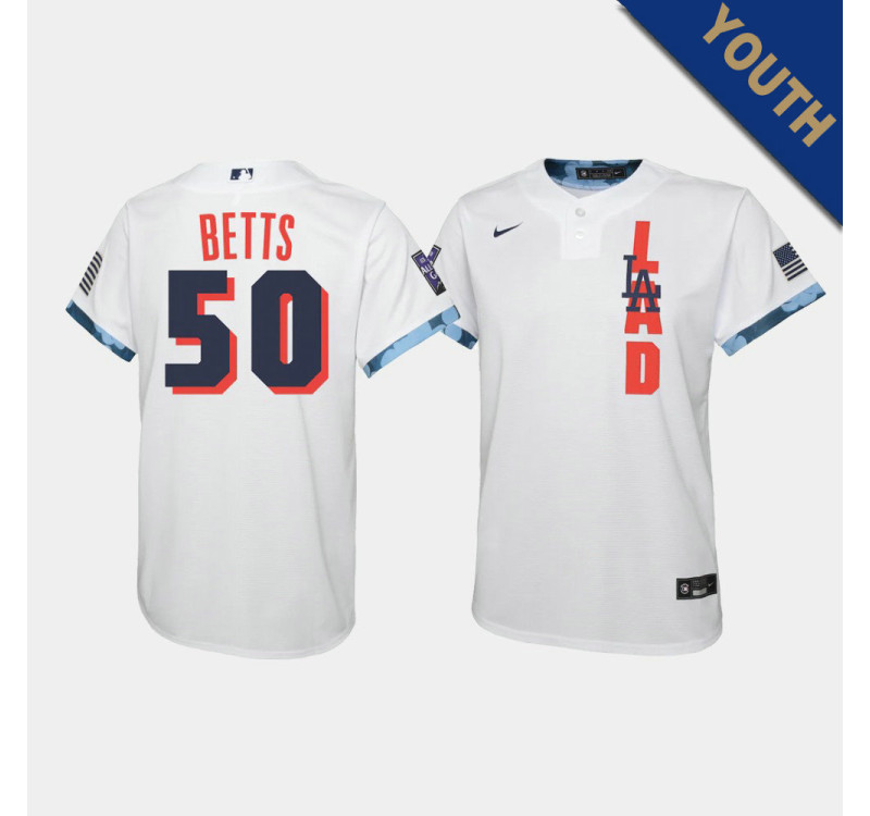 - Kid's Dodgers Mookie Betts #50 White 2021 All-Star Game Jersey