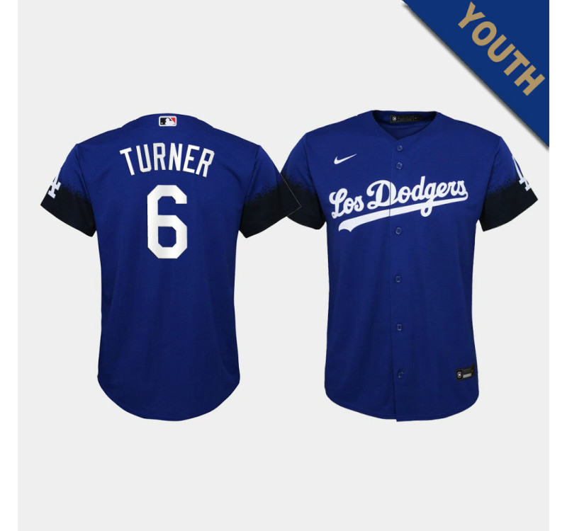 - Kid's Dodgers Trea Turner #6 Royal 2021 City Connect Replica Jersey