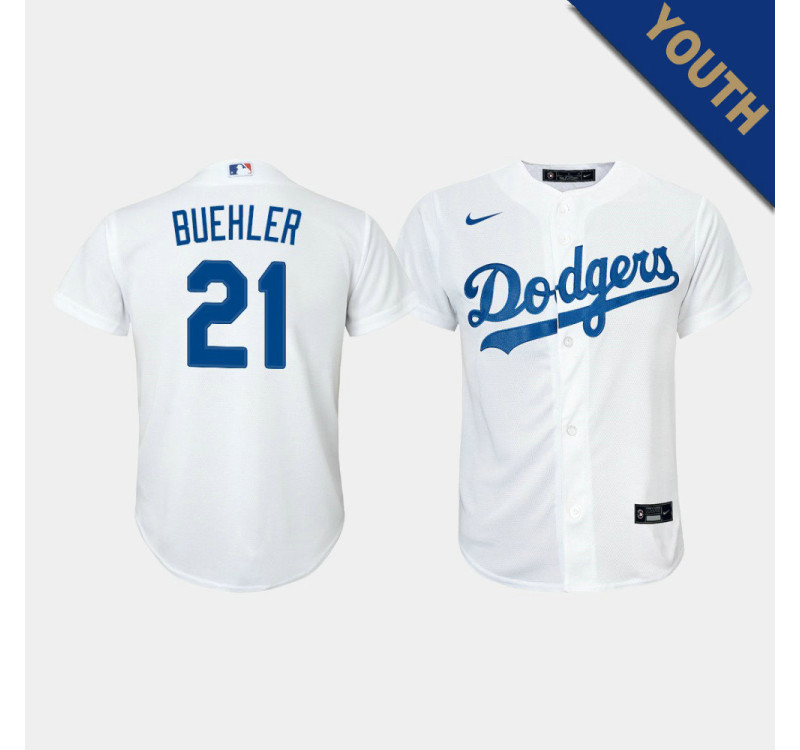 - Kid's Dodgers Walker Buehler #21 White Replica Home Jersey